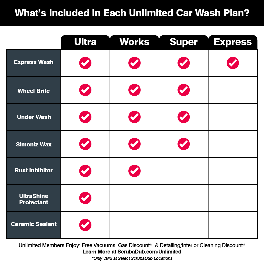 TERMS: *One transaction per vehicle for New ScrubaDub members only at East Greenwich, RI ScrubaDub location. I agree to join a ScrubaDub Unlimited plan for the promotional rate of $5 for the first month. The Ultra & Works plans are currently on sale and will be charged in months two (2) through six (6) at the current promotional pricing of $39.99/month and 29.99/month respectively. After month 6, Ultra will revert to its standard retail price of $42.99 and The Works will revert to $32.99. The Express and Super plan are not on sale and will charge the standard retail plan rate in month 2 which are $19.99 and $26.99 respectively. For a full list of Unlimited plan prices, please visit the East Greenwich Car Wash page. My selected payment card will be charged monthly for the agreed upon ScrubaDub plan pricing on a monthly basis after the promotional period unless the plan is canceled. Manage your plan anytime online.